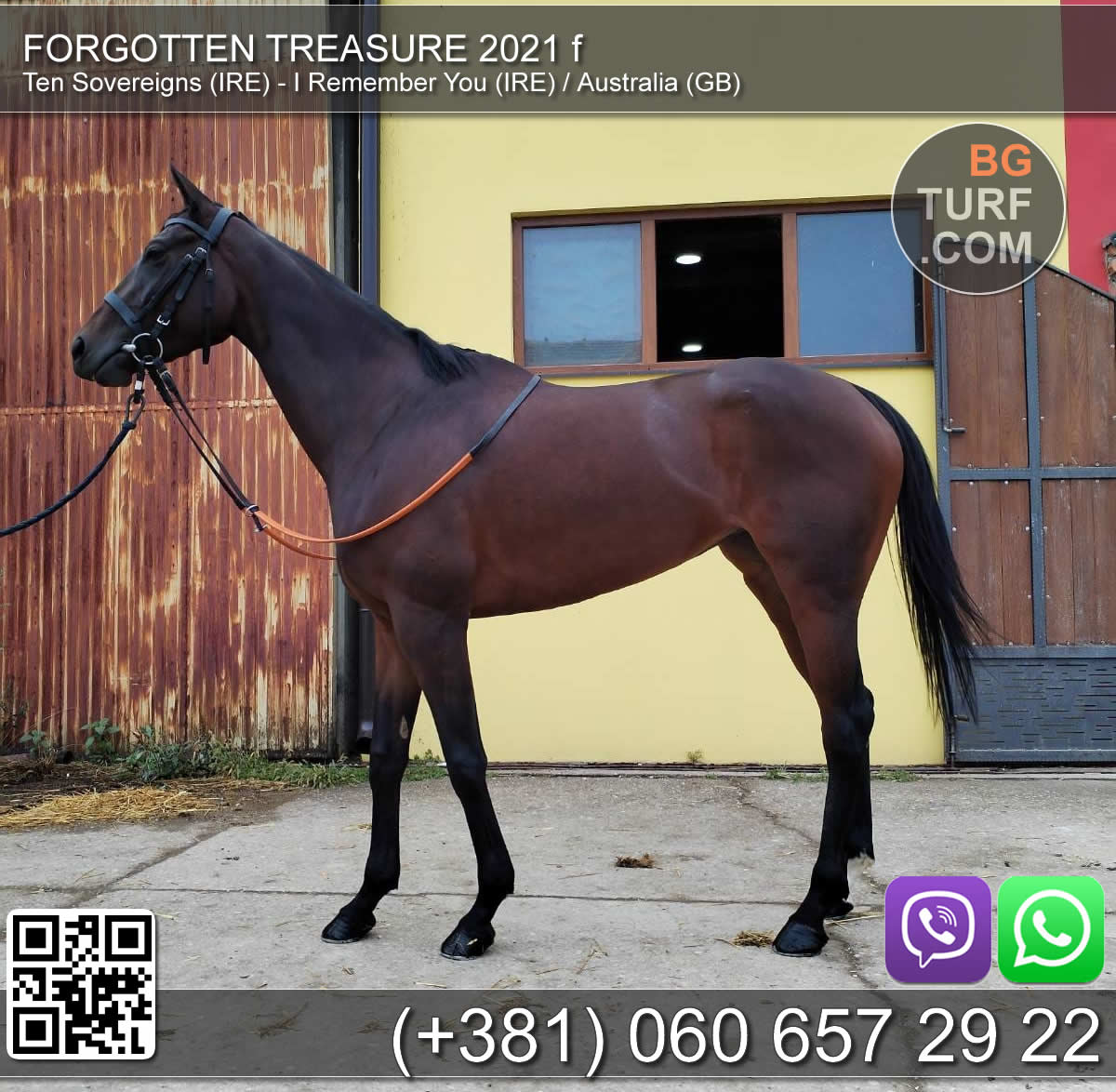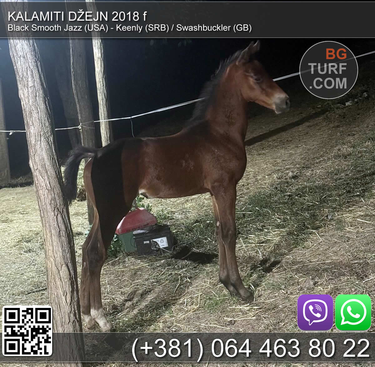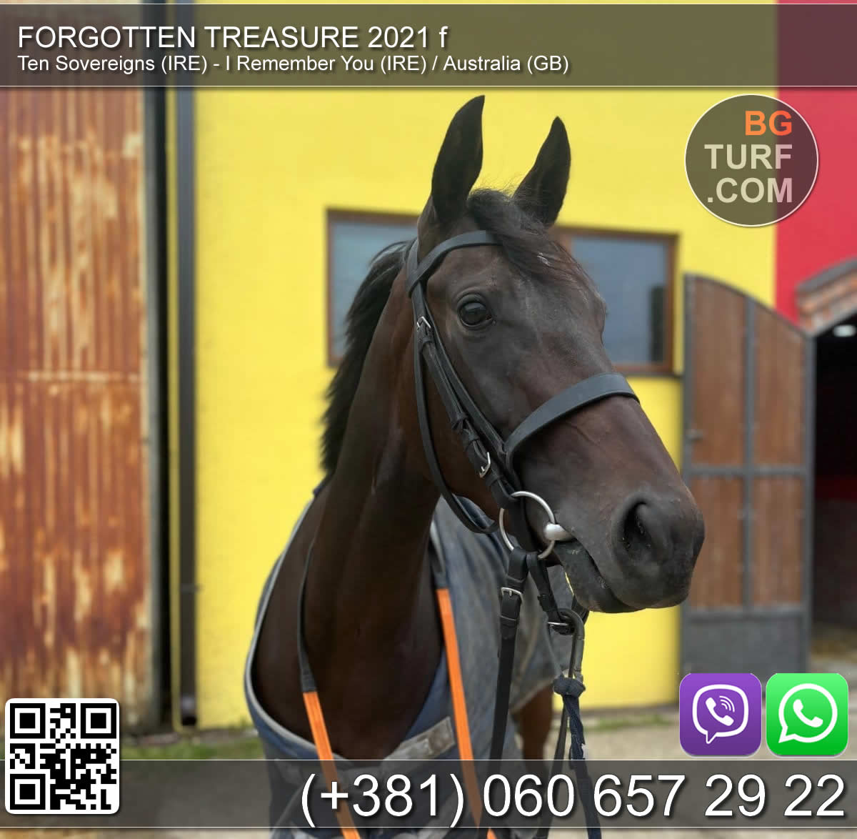 Kobila je francuski odgoj, oždrebljena 07.04.2021. Otac dao regionalnog šampiona Zvarovskog. Majčin otac grup pobednik u Francuskoj. Pogodna za priplod i rekreativno jahanje. Grlo se nalazi u Mačvanskoj Mitrovici kod Sremske Mitrovice.